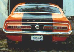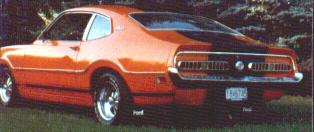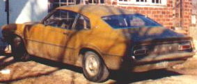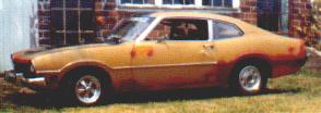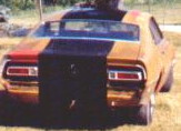Well.....after all the body work....it was time for paint. I had a week off of work, and it was the summer time, so I was out of school. First...pick a color. I went to Napa and looked at all the colors of tractor paint they had. At $19 a gallon....I couldn't beat the price. I picked orange. I sprayed the car in my uncle's garage. After the paint dryed, I brought the car home, added more stripes to the bottom of the car, and put a set of customized Mercury Bobcat tail-lights on the rear. The trim I removed was put back on the car with sheet metal screws. The lower stripes said 302 G.T. Right next to the Maverick emblems on the roof pillars I put vinyl letters that said shelby...all lower case. (Yes...the car still had the 6 cyl motor) I had traded two of my Fenton mags for actual Cragars...which were a little wider....and mounted those to the rear. I had also found a set of bucket seats that I spray painted with vinyl paint to try and match the rest of the interior. A week later....I had the car done. From about 20 feet away....it looked pretty good!!! ...or at least I thought so!!! |